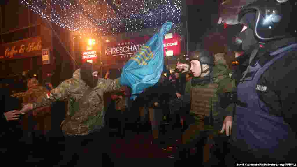 Активисты Организации украинских националистов забросали пиротехническими средствами помещение Альфа-Банка и один из офисов украинского олигарха Рината Ахметова. Толпа протестовала против торговли с районами Донбасса под контролем сепаратистов, где у Ахметова есть бизнес. 15 марта украинское правительство объявило, что прекращает транспортное сообщение с "ЛНР" и "ДНР". Блокада железнодорожного сообщения продолжается с января этого года.