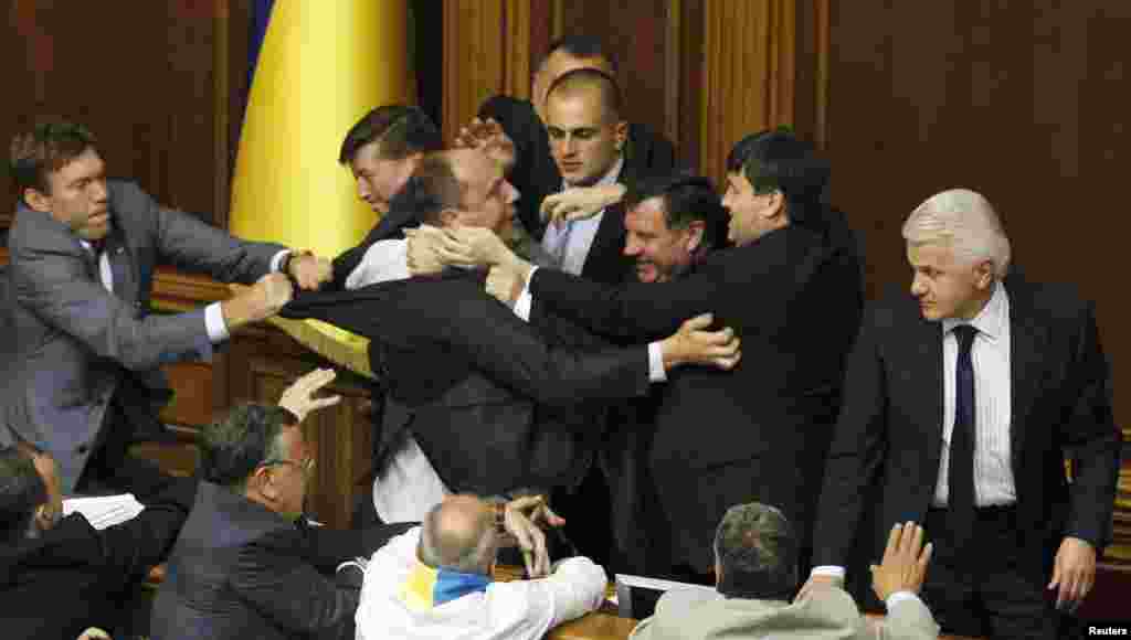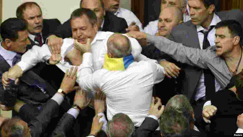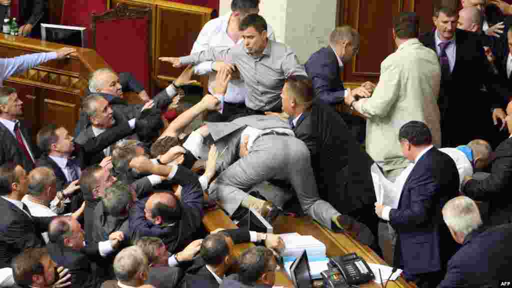 Дракой закончилось обсуждение в Верховной раде Украины законопроекта, связанного со статусом русского языка в республике.