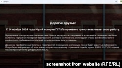Музей истории ГУЛАГа в Москве с 14 ноября приостанавливает свою работу. Объявление об этом появилось на сайте музея. Посетителям, которые заранее купили билеты на экскурсии и мероприятия, вернут деньги.