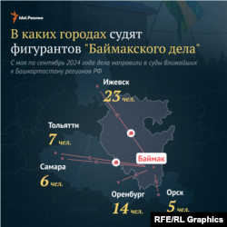 Точное число обвиняемых по делу неизвестно. По открытым данным, перед судом должны предстать не менее 76 человек. Большинство обвиняемых судятся не в Башкортостане, а в соседних регионах.