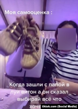 Еще одно, с очередной парой дорогих кроссовок, Лида подписывает: "Когда зашли с папой в луи витон а он сказал выбирай что хочешь":