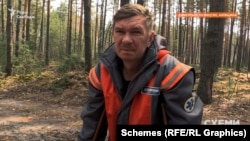Когда Михаил Кушнир пришел на это место с журналистами, подошел человек на костылях, с ногой в гипсе. Это оказался 44-летний Олег Черненко, который работал водителем в медицинской службе. Он также пережил пытки российских военных. Вместе с Михаилом и братом Олега его тоже незаконно удерживали в лесу. На вопрос о том, как с пленниками обращались, он ответил: "Бросили, и все".