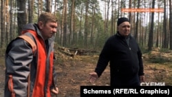 Вместе Михаил и Олег идут через лес и подходят к упомянутому дому, показывают журналистам Радио Свобода последнее место заключения. Олега держали в одной комнате, Михаила – в другой, cо связанными руками.