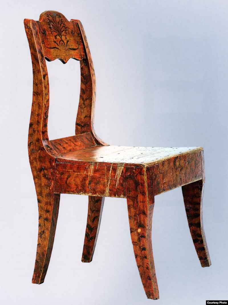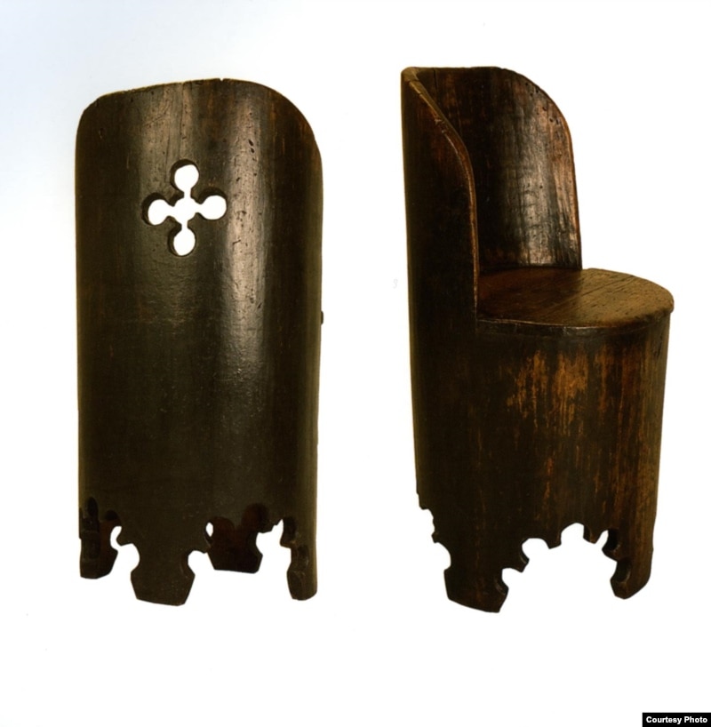 Дмитрий Журавлев – совладелец упомянутого Мариной Лошак антикварного салона "Русская усадьба". Самый ранний предмет выставки из этого собрания - полукруглый, выдолбленный из цельного дерева стул XVII века. Это кресло из Великого Устюга.