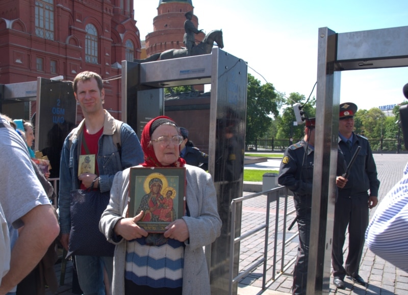 Команда "задержать" последовала после того, как у Нади Толоконниковой(феминистская фракция группы "Война") взяло интервью немецкое телевидение. Журналист не сдержался и выругался на полицию матом, по-русски