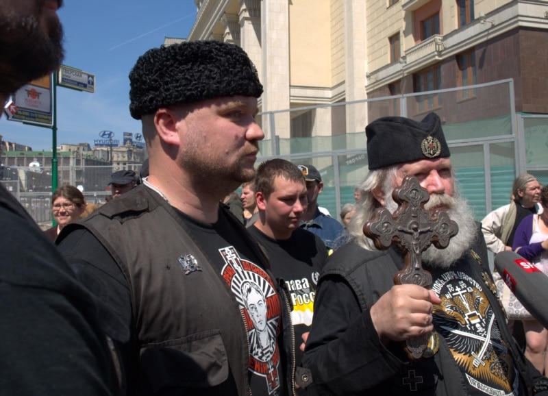 Активисты "Народного собора" советовали геям убираться вон. Хоругвеносцы плюнули в сторону геев. Полиция не реагировала.