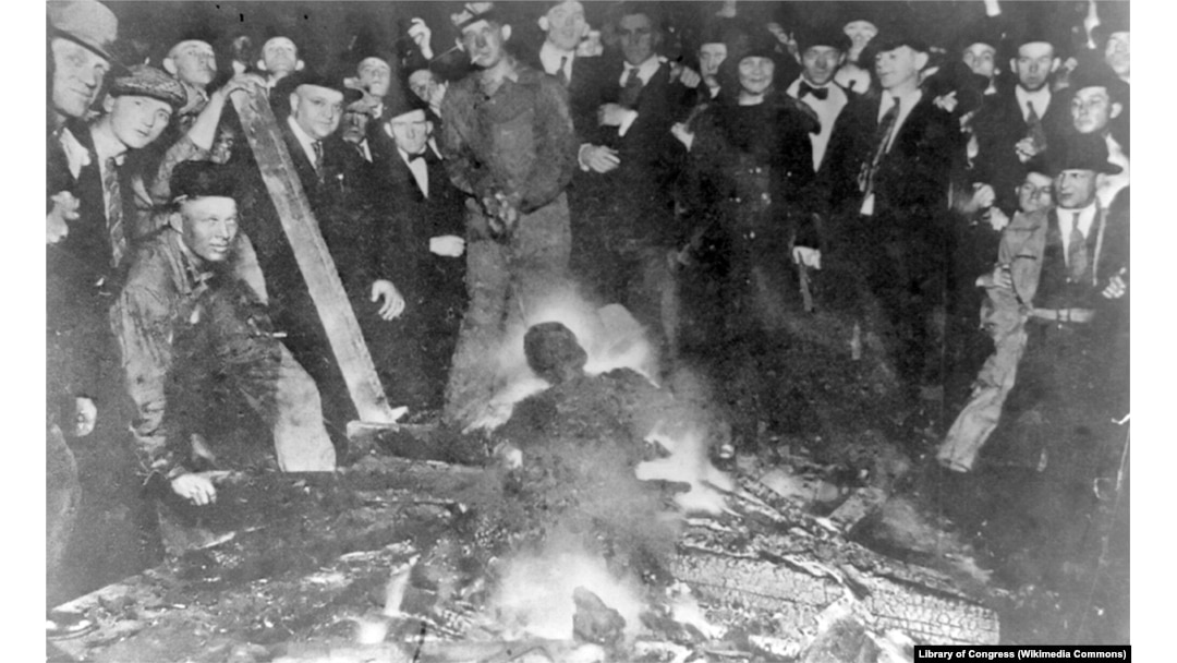 Разъяренная толпа забивает камнями жертву. Фото из газеты Werst Virginian. 31 июля 1919.