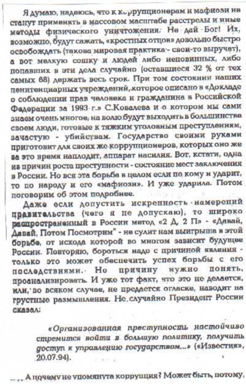 ....я буду в ней доказывать. (М.Салье "Мафрупция, мафрупция!!! Мафия и коррупция. М., 1994 г., с.7-14).